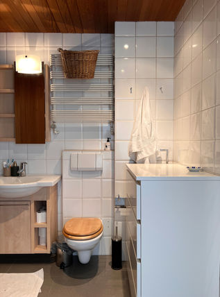 En geloof het of niet, maar een sauna vind je ook in deze badkamer!